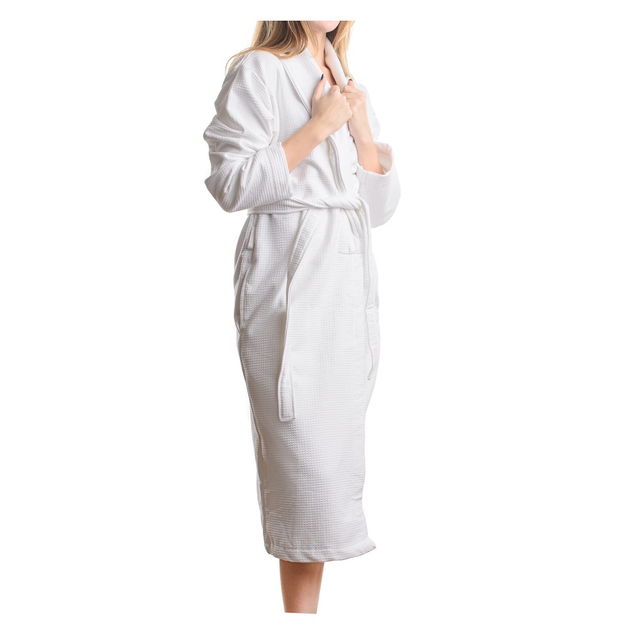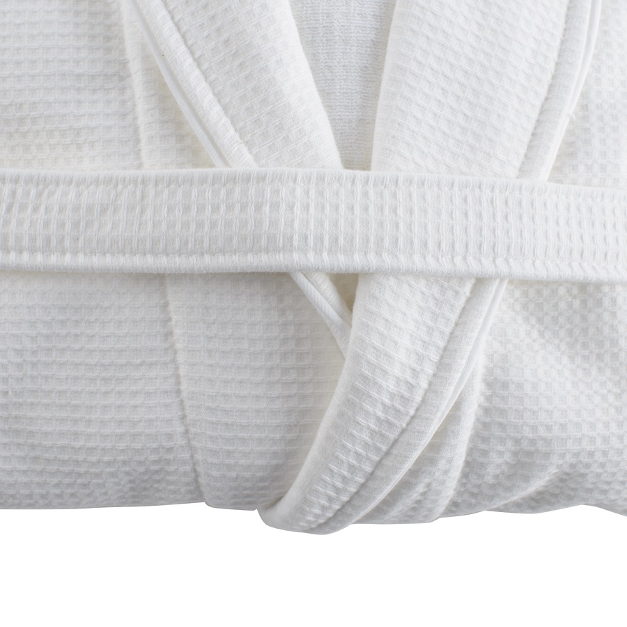 Банный халат подарит ощущение нежности и уюта после принятия душа. Внешняя сторона произведена из прочного вафельного хлопка, а внутрення – из мягкой махры. Изделие отлично впитывает влагу, оставляя приятное ощущение свежести и чистоты. Халат отличается особенной износостойкостью, хорошо держит форму и сохраняет качественные свойства на протяжении долгого времени. Модель с шалевым воротником дополнена двумя карманами по бокам. Плотность ткани - 429GSM.