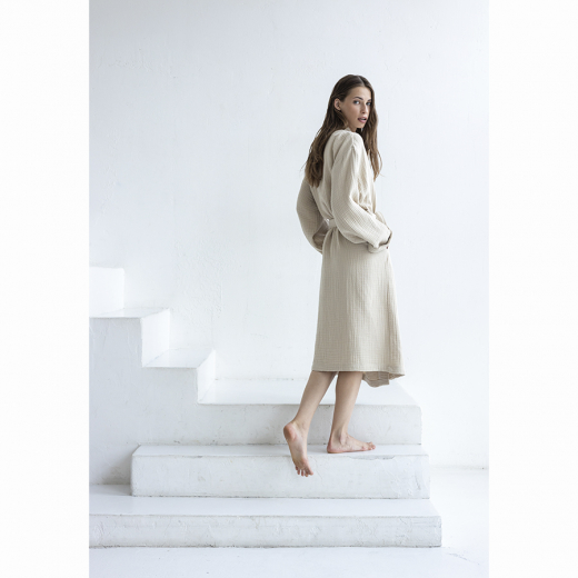 Халат из многослойного муслина бежевого цвета из коллекции Essential, размер L, Tkano