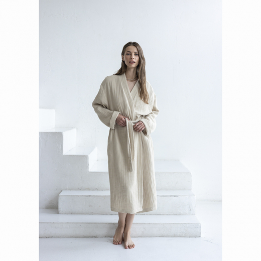 Халат из многослойного муслина бежевого цвета из коллекции Essential, размер S, Tkano