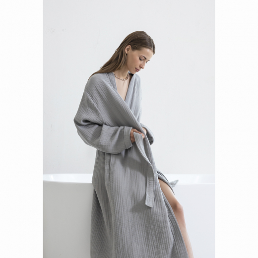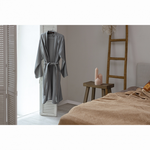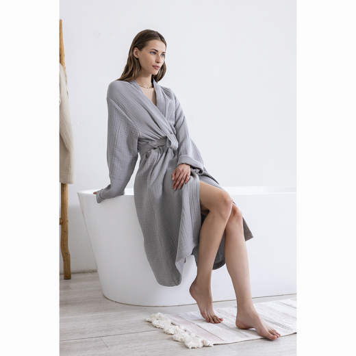 Халат из многослойного муслина серого цвета из коллекции Essential, размер L, Tkano