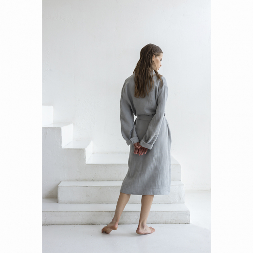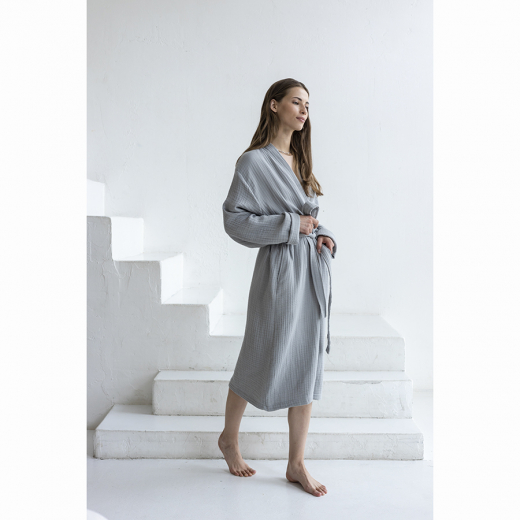 Халат из многослойного муслина серого цвета из коллекции Essential, размер S, Tkano