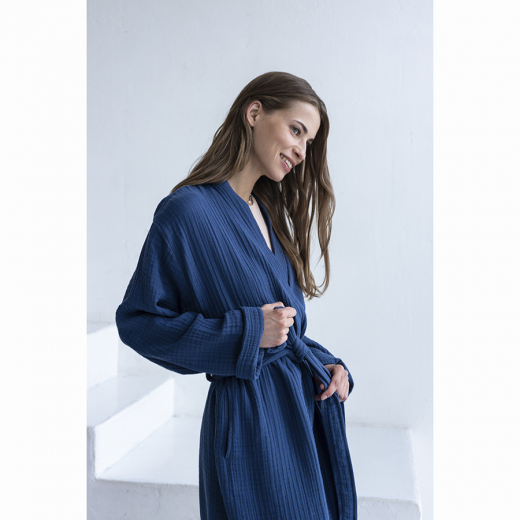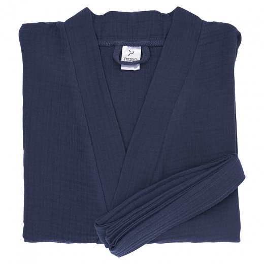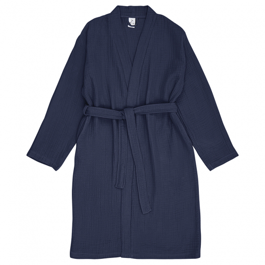 Халат из многослойного муслина темно-синего цвета из коллекции Essential, размер L, Tkano