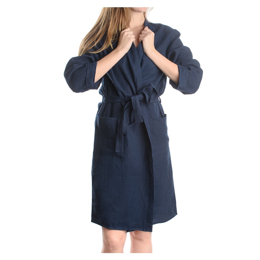 Халат из умягченного льна темно-синего цвета Essential, размер S, Tkano