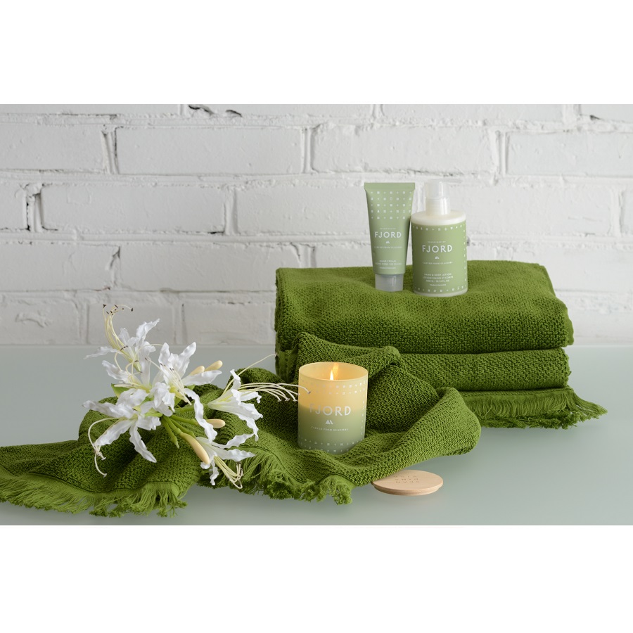 Оливково-зеленое банное полотенце с бахромой из коллекции Essential понравится тем, кто любит качественный и стильный текстиль. Мягкая, при этом прочная пряжа изготавливается из лучших сортов длинноволокнистого хлопка методом тщательного прочесывания, что значительно улучшает ее качественные характеристики. Изделие быстро впитывает влагу, оставляя приятное ощущение свежести и чистоты. Полотенце хорошо держит форму и сохраняет впитывающие свойства на протяжении длительного времени. Модель украшена фактурным узором и мягкой бахромой в тон.