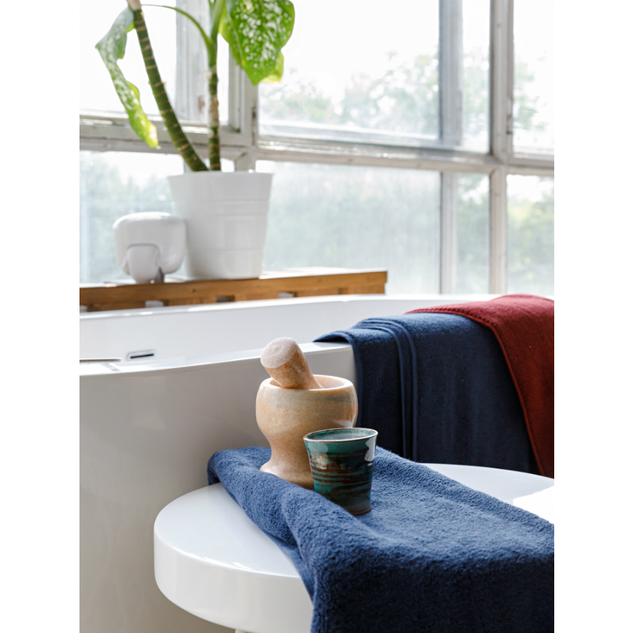 Однотонное банное полотенце темно-синего цвета из коллекции Essential понравится тем, кто любит качественные и стильные банные принадлежности. Мягкая, при этом прочная пряжа изготавливается из лучших сортов длинноволокнистого хлопка методом тщательного прочесывания, что значительно улучшает ее качественные характеристики. Изделие быстро впитывает влагу, оставляя приятное ощущение свежести и чистоты. Полотенце отличается износостойкостью: хорошо держит форму и сохраняет впитывающие свойства на протяжении длительного времени.