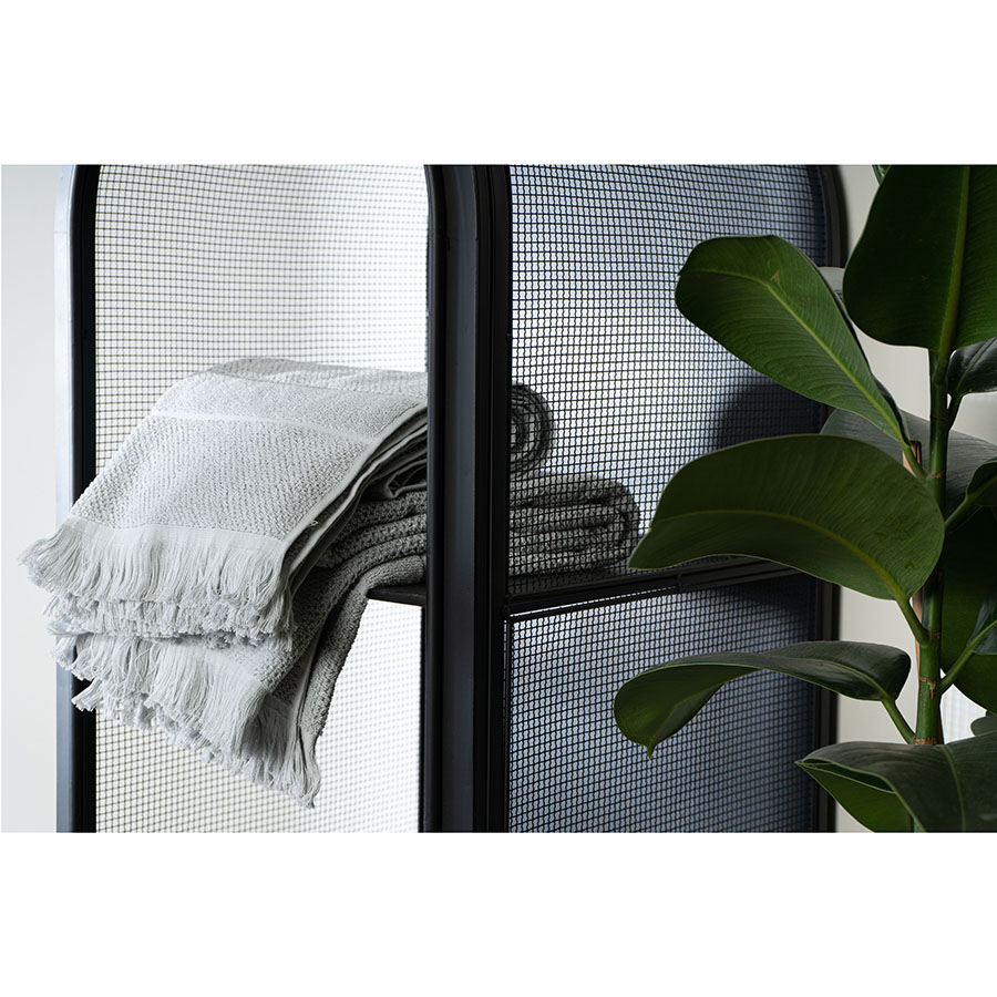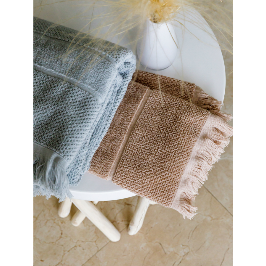 Серое полотенце для рук с бахромой из коллекции Essential понравится тем, кто любит качественный и стильный текстиль. Мягкая, при этом прочная пряжа изготавливается из лучших сортов длинноволокнистого хлопка методом тщательного прочесывания, что значительно улучшает ее качественные характеристики. Полотенце хорошо держит форму и сохраняет впитывающие свойства на протяжении длительного времени. Модель украшена фактурным узором и мягкой бахромой в тон.