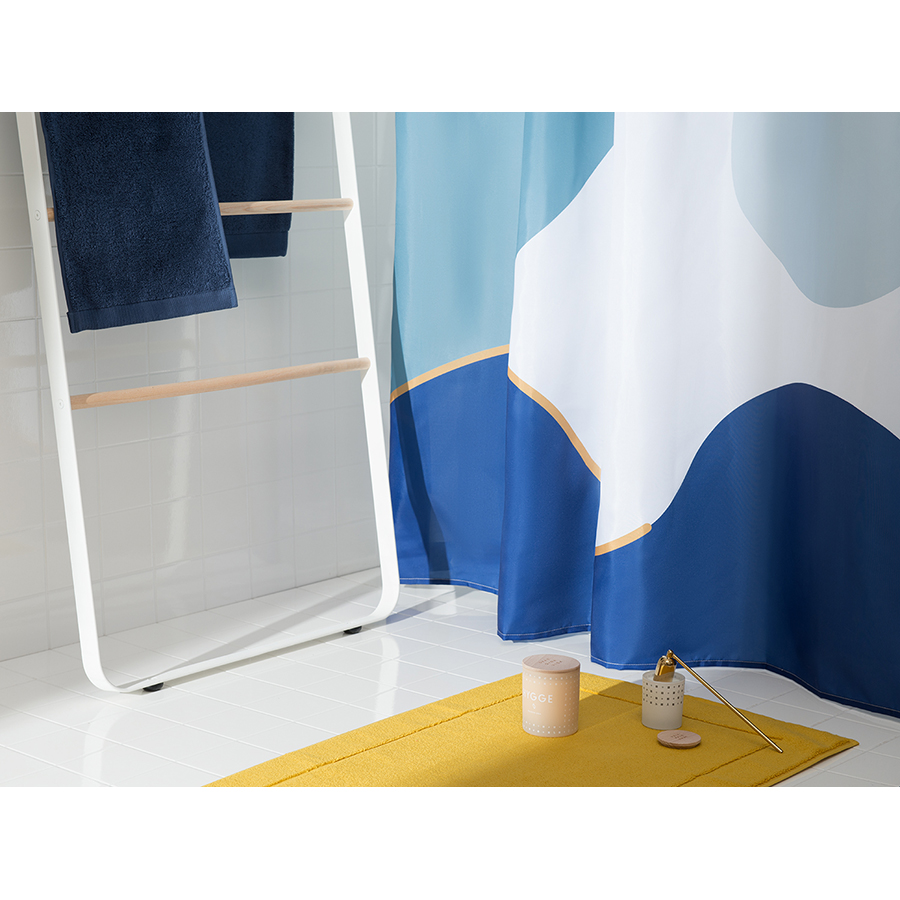 Штора выполнена из полиэстера с водоотталкивающей пропиткой, поэтому хорошо защищает от брызг. Поставляется в стильной упаковке-сумочке с таким же принтом. Кольца для шторы не входят в комплект. Плотность ткани - 90GSM.